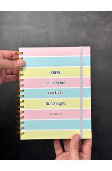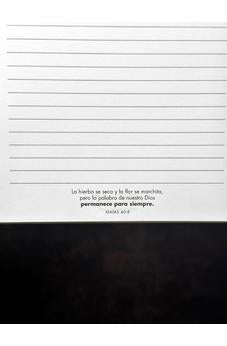 Librera de anillas Tapa Dura. Con efectos en la portada. Versículos en el interior. 192 páginas. Tamaño: 8.4” x 6.4” x 1” (213 x 163 x 25mm)